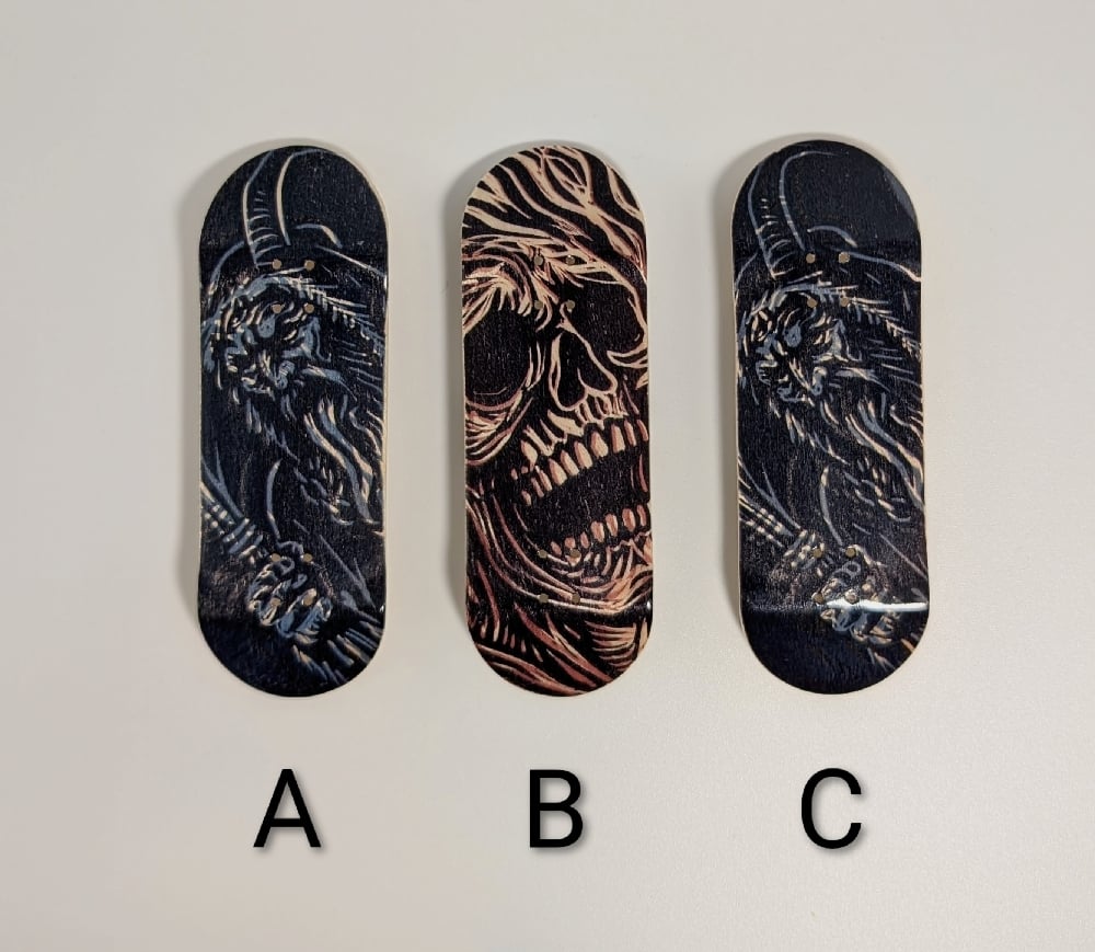 5 ply wooden SnailStain decks with hand carved linocut prints applied.