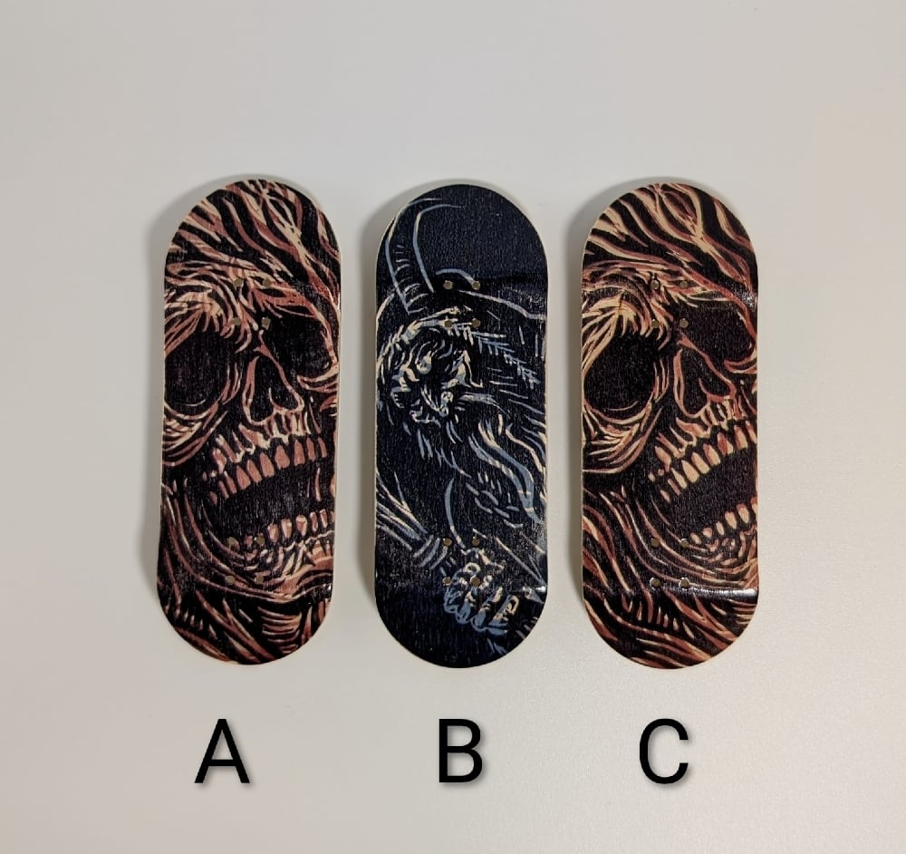 5 ply wooden SnailStain decks with hand carved linocut prints applied.